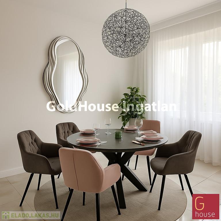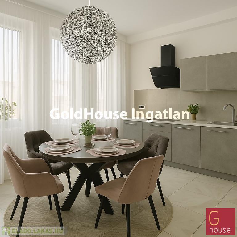 A hatalmas, teljesen gépesített konyhában kényelmesen elfér egy étkezőasztal is, így a mindennapok központi tere lehet. A praktikus kamra, a tágas előszoba – amely akár váróként is funkcionálhat –, a világos loggia, valamint a zuhanyzós fürdőszoba és a külön vendég WC mind a kényelmet szolgálják.