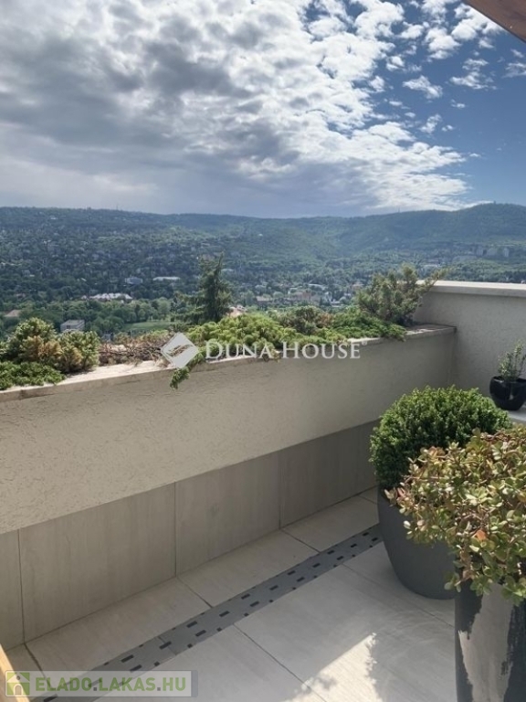 IGAZI RITKASÁG TÖRÖKVÉSZ KEDVELT RÉSZÉN!REPREZENTATÍV KÖRNYEZETBEN IGÉNYES, PANORÁMÁS, TERASZOS LAKÁS GARÁZZSAL ÉS TÁROLÓVAL!II. kerületben, ELEGÁNS környéken, az Endrődi Sándor utcában, jó állapotú, szigetelt teraszházban eladó egy 97nm-es (+9nm terasz), nappali + 3 hálószobás, MODERN STÍLUSBAN felújított 2. emeleti lakás, ÖRÖKPANORÁMÁVAL a János-hegyre. Az ingatlant a tágas terek, a kiváló elosztás, a komfort és a funkcionalitás jellemzi:- egyedi belsőépítészeti megoldások- kiváló minőségű gépesített konyhabútor- beépített szekrények- panorámás terasz- önálló garázs és nagy tároló (15nm)- klíma- riasztóA lakás déli tájolásának köszönhetően rendkívül világos, körbe napozott. Az ingatlanhoz tartozó garázs és tároló megvásárolandó további 15.000.000,-Ft összegben. A környék közlekedése és infrastruktúrája is kiváló: pár perc sétával könnyedén elérhető az 5-ös, 91-es, 149-es és 291-es buszok megállója, továbbá autóval pillanatok alatt megközelíthető számos élelmiszerbolt, bevásárlóközpont (Rózsakert, Rózsadomb Center, Mammut), óvoda, iskola, bank, orvosi rendelő továbbá számos kikapcsolódási lehetőség (mozi, éttermek, túraútvonalak) található a közelben.AMENNYIBEN KELLEMES HANGULATÚ OTTHONÁT KERESI A BUDAI HEGYEK KRISTÁLYTISZTA LEVEGŐJÉBEN, MÉGIS KÖZEL A BELVÁROSHOZ, EZT AZ INGATLANT LÁTNIA KELL!
