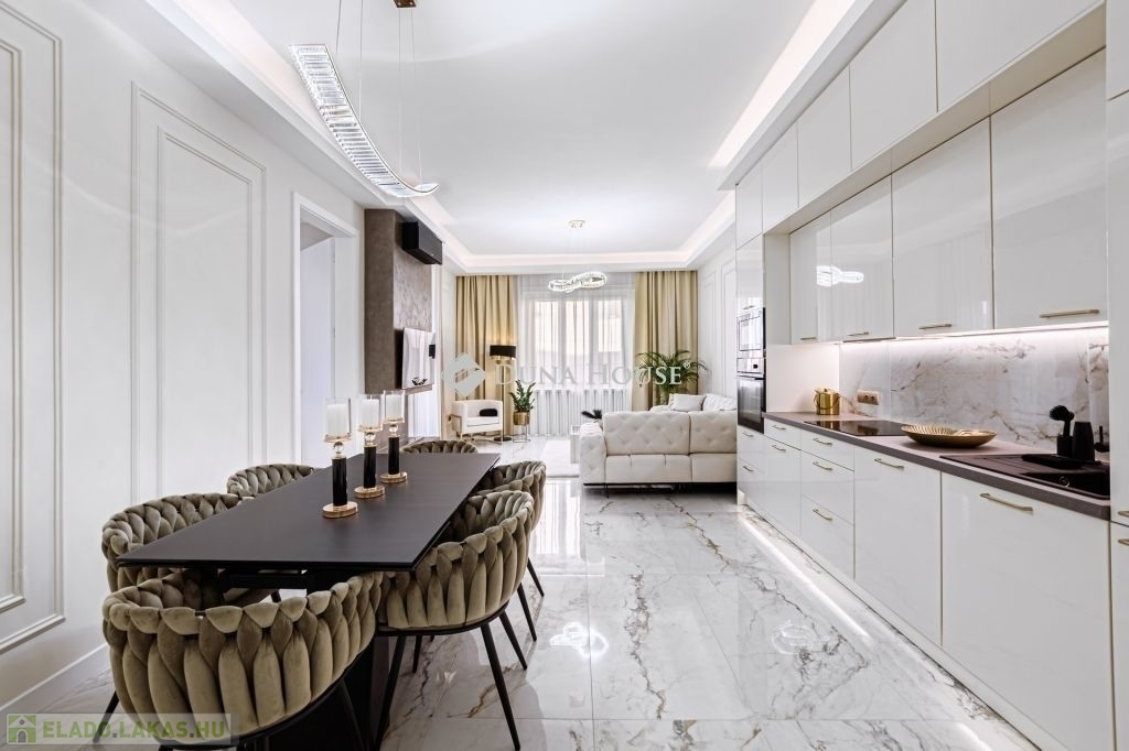 ERKÉLYES DUNAI PANORÁMÁS LUXUS KIVITELEZÉSBEN FELÚJÍTOTT 91-nm-es LAKÁS ELADÓ!2. kerület frekventált részén a Bem József utcában eladóvá vált ez a 91 nm-es, 5nm-es erkéllyel rendelkező, utcai nézetű, Dunai panorámás, napfényes, luxus kivitelezésben felújított lakás, amely egy rendezett, szép állapotú Társasház 3.emeletén található.A belsőépítészek nagy hangsúlyt fektettek a lehető legpraktikusabb elrendezésre, ezzel is minél jobban kihasználva a lakás adottságait. Így került kialakításra 2 hálószoba, 2 fürdőszoba, tágas gépesített konyha étkezővel, hatalmas nappali, tágas előszoba és egy gardrób szoba.A lakásban a bútorok egyrészt neves lakberendező által egyedileg tervezett és gyártott exkluzív, illetve egyedi olasz desing bútorokkal berendezett, melyeket még szebbé varázsolnak a gyönyörű textíliák.Minden térben található egy-egy jól használható, azaz tárolásra alkalmas beépített bútordarab, így például a lakásban lévő beépített szekrények rengeteg rakodófelületet biztosítanak az új lakók számára. A lakás továbbá teljeskörűen gépesített, mosó-szárítógéppel, mosogatógéppel, beépített minőségi konyhagépekkel, hangszigeteléssel, Daikin hűtő-fűtő klímákkal felszerelt.Hálószobák díszfalai kővel és lamellákkal burkoltak, melyek exkluzív, szép felületei egyedi és különleges hatást kölcsönöznek a térnek. Az ágyak egyedileg ide tervezett kárpit fejvégeket kaptak, melyek mögött egyedileg tervezett világítástechnika került kialakításra, hogy még hangulatosabbá tegye a hálószobákat.A fürdőszobákban kiváló minőségű szaniterek (Laufen, Blanco Blancozia, Arezzo...stb.) és a lakás stílusához illő olasz design burkolatok kerültek felhasználásra. A nappaliban és hálószobákban kiváló technikával rendelkező okos TV-k kerültek felszerelése, illetve Daikin klímák kerültek beépítésre. Neves designerek dekorációi igazán modern, mégis elegáns hangulatúvá teszik az ingatlant.A vételár tartalmazza a teljes bútorzatot és kiegészítőket!Extrák:Led világítás, Klíma, Bio kandalló, Hangszigetelés, Gránit mosogató, Egyedileg gyártott olasz bútorok, Mosható falfelületek, Bio kandalló, klímákAz elegáns megjelenést kölcsönöz ismert tervezők textíliái és dekorációs elemei.-2023-ban teljeskörű felújítás-Daikin Hűtő-fűtő Klíma-Panoráma Dunára, Margithídra-Tágas panorámás erkély-Hőszigetelt nyílászárók-Szomszédos oldalak és utca felőli falfelületek hangszigetelése-Az ablakok alumínium elektromos redőnyökkel felszerelt-Minőségi konyhagépek kerültek beszerelésre-Igényes olasz dezing bútorokkal berendezettParkolási lehetőség:A társasház mellett lévő szálloda teremgarázsában autóbeálló bérelhető vagy vásárolható.Környék:A környék frekventált, Margit híd, Margitsziget és a Duna part sétatávolságra található. A ház mellett épül a BEM projekt, itt luxus szállodát, irodaházat létesítenek, parkosítanak, korlátozzák a forgalmat.Amennyiben az ingatlan felkeltette érdeklődését, keressen bizalommal a részletekkel kapcsolatosan.FEELING OF LIFE IN BUDA..!RENOVATED 91 sqm APARTMENT WITH BALCONY AND PANORAMIC DANUBE VIEW FOR SALE!In Bem József utca, a frequented part of the 2nd district, this 91 sqm, 5 sqm balcony, street view,Danube panoramic, sunny, luxuriously renovated apartment is for sale, located on the 3rd floor of anorderly, well-maintained condominium.The interior designers put a lot of emphasis on the most practical layout possible, thus making themost of the apartment, 2 bedrooms, 2 bathrooms, a spacious mechanized kitchen with a diningroom, a huge living room, a spacious hall and a wardrobe room.The furniture in the apartment is furnished with exclusive and unique Italian design furnitureindividually designed and manufactured by a renowned interior designer, which is made even morebeautiful by the beautiful textiles.Every space has a built-in piece of furniture that can be suitable for storage, so for example the built-in wardrobes in the apartment provide plenty of storage space for the new residents. The apartmentis also fully mechanized, equipped with a washer-dryer, a dishwasher, built-in quality kitchenappliances, sound insulation, and Daikin cooling and heating air conditioners.The decorative walls of the bedrooms are covered with stone and slats, the exclusive, beautifulsurfaces of which give the space a unique and special effect. The beds were given custom-designedupholstery headboards, behind which individually designed lighting technology was installed to makethe bedrooms even more cozy.In the bathrooms, high-quality sanitary ware (Laufen, Blanco Blancozia, Arezzo...etc.) and Italiandesign coverings matching the style of the apartment were used. Smart TVs with excellenttechnology were installed in the living room and bedrooms, and Daikin air conditioners wereinstalled. Decorations by well-known designers give the property a truly modern, yet elegantatmosphere.Extras:Led lighting, Air conditioning, Bio fireplace, Sound insulation, Granite sink, Custom-made Italianfurniture, Washable wall surfaces, Bio fireplace, air conditionersTextiles and decorative elements from well-known designers give it an elegant look.- Complete renovation in 2023-Daikin Cooling-heating Air conditioner- Panorama of the Danube, Margthíd-Spacious panoramic balcony-Heat-insulated doors and windows-Sound insulation of neighboring sides and wall surfaces facing the street-The windows are equipped with aluminum electric shutters- Quality kitchen appliances have been installed- Furnished with refined Italian design furnitureParking opportunity:A parking space can be rented or purchased in the garage of the hotel next to the apartmentbuilding.Surroundings:The neighborhood is frequented, Margit Bridge, Margit Island and the Danube shore