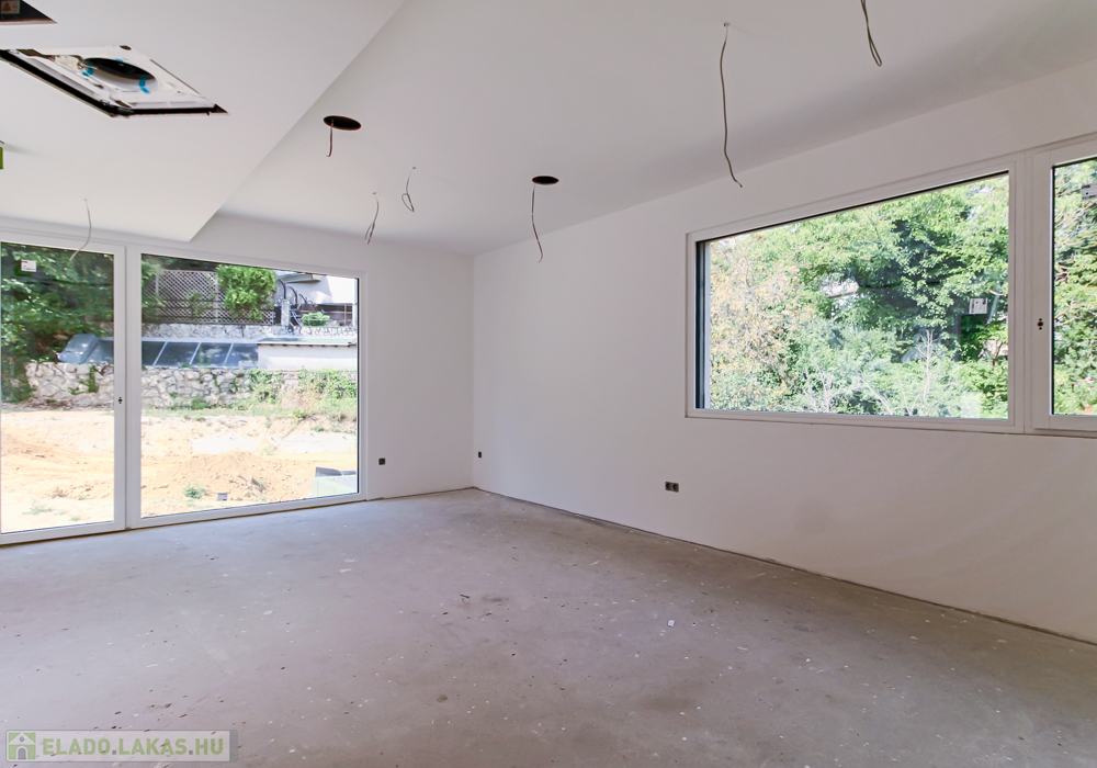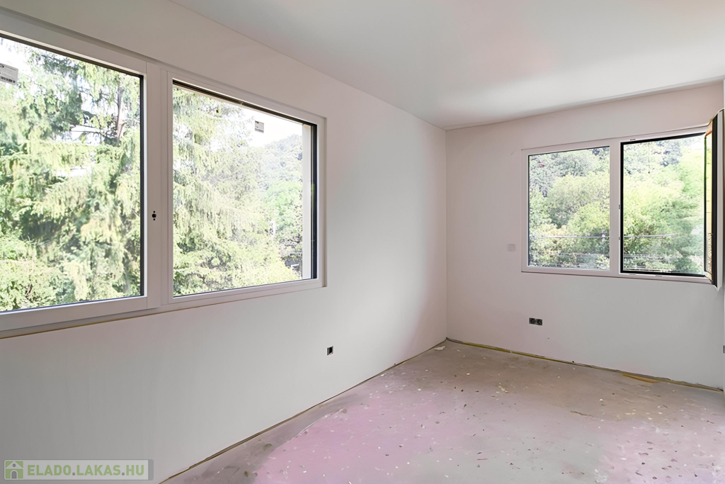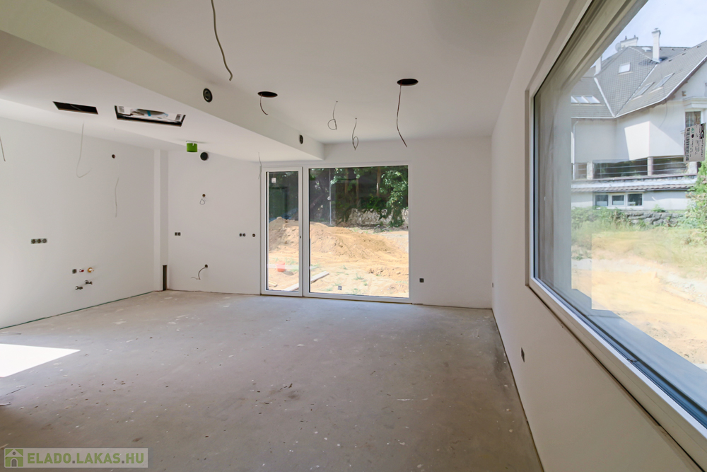A szóban forgó ingatlan egy ötlakásos modern, liftes társasház része. A szinteltolásos telekkialakítás eredménye, hogy az első emeleti elhelyezkedése ellenére, saját 340 m2-es kertrésszel büszkélkedik, ahova Déli tájolású teraszon keresztül jutunk ki. A lakás további különlegessége, hogy minden szobája extra nagy ablakokkal rendelkezik melyek zöldre néznek. Ezen tulajdonságok együttese kellemesebbé teszi az otthon eltöltött időt.