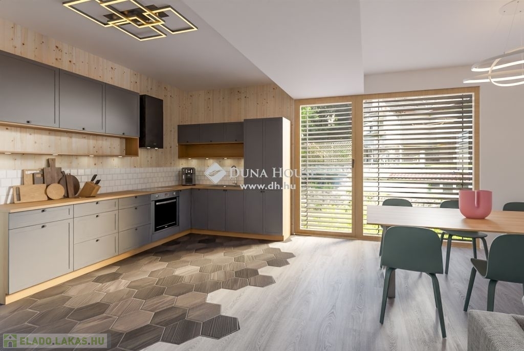 A hirdetésben szereplő ingatlan a földszinten helyezkedik el, 97 négyzetméter +338 négyzetméter saját használatú kert, + 21 négyzetméter terasz, nappali-amerikai konyha, 3 hálószoba, fürdő és 2 erkély került kialakításra. A garázs vételára 12 Millió Ft/db, a tároló 5 - 8,5 négyzetméteres 1,2 Millió Ft/nm.