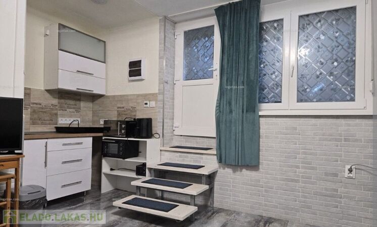 Az ingatlan utcai bejáratos, 22 nm. A hivatalos megnevezése iroda, de most lakhatásra alakították ki. Az ajtón belépve egy légtérben helyezkedik el a nappali azon belül a konyha és a háló. Külön helyiségben van a wc és épített tusoló. Padló fűtés + klíma gondoskodik az ideális hőmérsékletről. Felújítás, minőségi anyagokkal kivitelezve, desing, fiatalos. A Konyhabútor a vételár részét képezi. Kitűnő választás első lakásnak vagy üzletnek, irodának. Ki mit lát benne! Iár: 35 M Ft