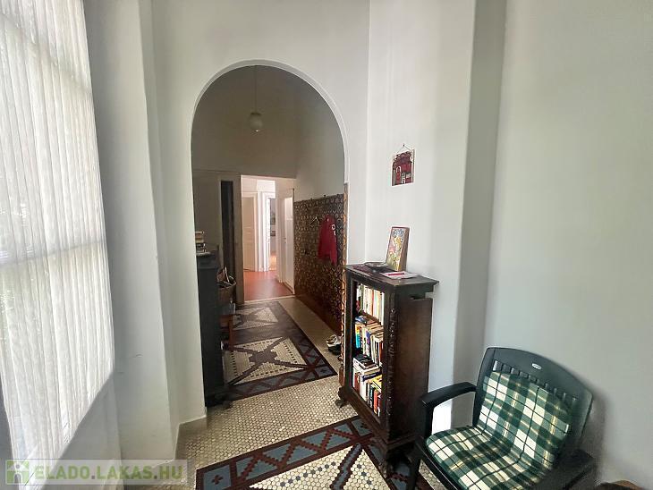 Eladó egy kivételes adottságokkal rendelkező, 195 m²-es, kertkapcsolatos lakás csendes mellékutcában, zöldövezeti környezetben. A lakás külön bejárattal rendelkezik, így teljes intimitást biztosít lakóinak. A 4 méteres belmagasság és a hatalmas ablakok tágas, világos tereket teremtenek, amelyek egyedülálló hangulatot nyújtanak.