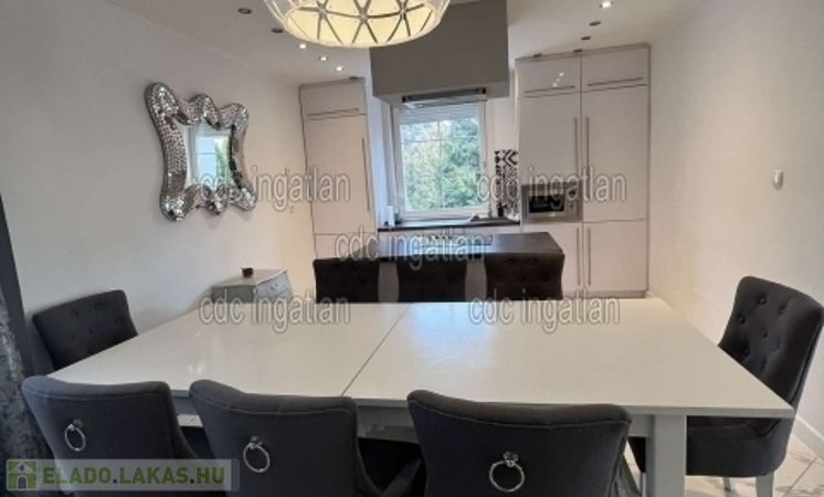 TÖRÖKVÉSZEN, VARÁZSLATOS KÖRNYEZETBEN, PANORÁMÁS, NAGY TERASZOS LAKÁS ELADÓ! II. kerületben kínáljuk megvételre ezt a 165 m2-es, belső kétszintes, 4 szobás, de igény esetén 5 szobássá alakítható, amerikai konyhás nappalival rendelkező, 2 fürdőszobás, 2 nagy teraszos, cirkófűtéses, klimatizált, Déli fekvésű, csupa napfényes, csendes, 2000-ben teljes körűen és igényesen felújított, kitűnő állapotú, örökpanorámás lakást. Az ingatlan egy 3 lakásos társasház első emeletén található. A kilátás lenyűgöző, fantasztikus panoráma tárul elénk a budai hegyekre. A kert csodaszép, füvesített, parkosított, tuják, bokrok, cserjék, örökzöldek és virágzó növények díszítik. KINEK AJÁNLOM? Olyan igényes, új tulajdonost keresünk, akinek fontos a hely, a környezet, az örök panoráma és minden álma egy ilyen varázslatos helyen élni. Értékálló befektetés! A gépesített konyhabútor és a beépített fürdőszobai szekrények az ár részét képezik! Az ingatlanhoz tartozik egy 20 m2-es tároló és 2 db fedett autóbeálló. Az ingatlan per-és tehermentes és azonnal birtokba vehető! Irányár: 391.000.000 Ft.