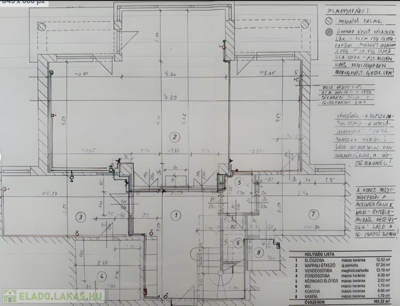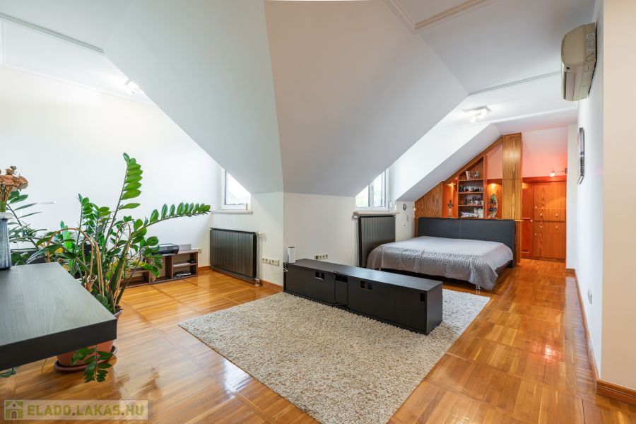 Nettó alapterület: 210 m² (102m² + 108 m²), két szintes elrendezés, több szinten elkülönített funkcionális zónák.