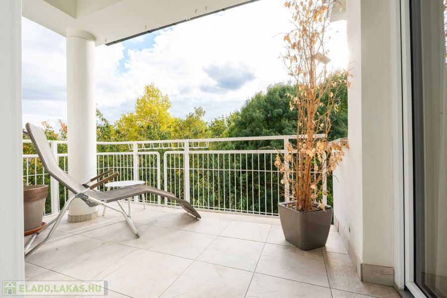 A lakás egy nagy parkosított, jól körbekerített kertben helyezkedik el, hangulatos terek, gyerekeknek játszóhelyek, akár kerti partykat is szervezhetünk.