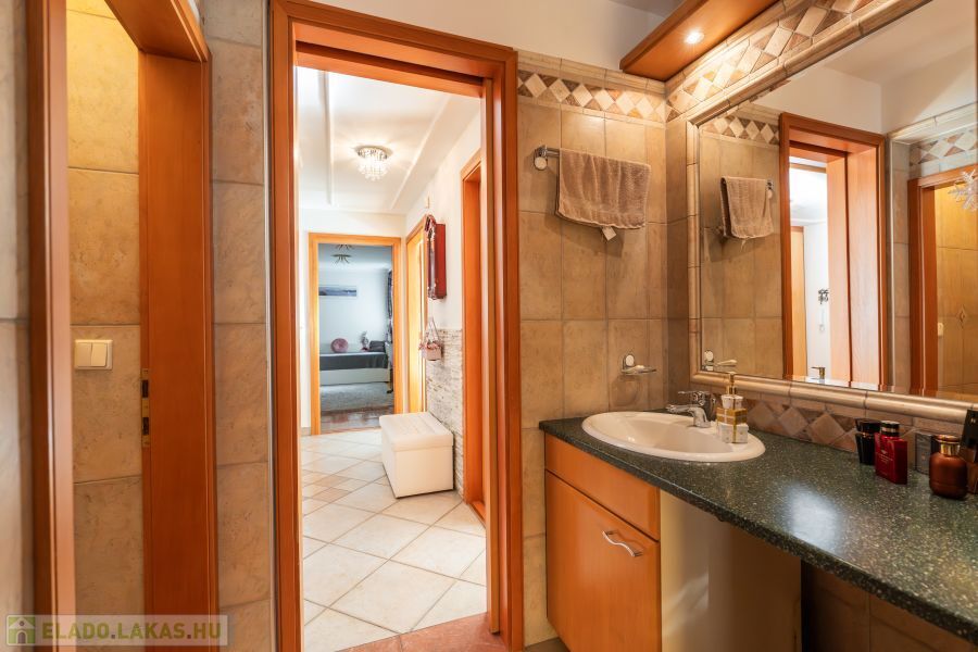 Elrendezés: 57 m²-es nyitott nappali-étkező, négy tágas hálószoba, három fürdőszoba, valamint külön vendégmosdó
