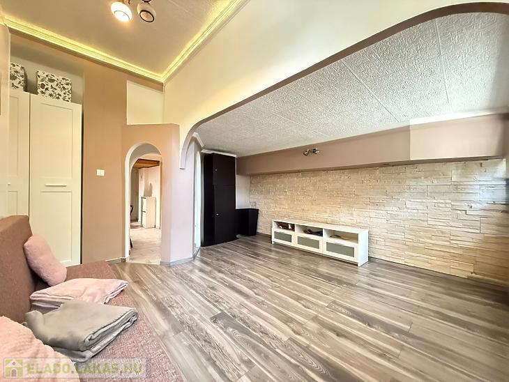 A felújítás során minden megújult – vezetékek, burkolatok, nyílászárók –, több válaszfal elbontásával pedig egy sokkal tágasabb tér alakult ki. A lakás külön kamrával, külön WC-vel és egy ízlésesen kialakított zuhanyzós fürdőszobával rendelkezik. A közös költség részét képezi a fűtés is.