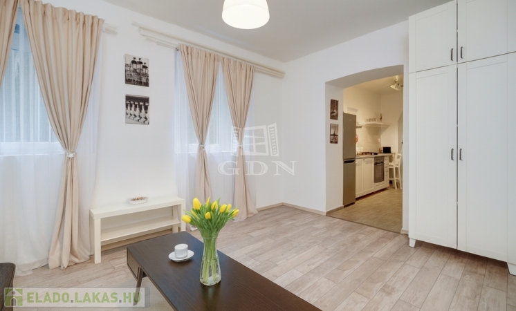 A Rózsadomb kedvelt részén, kiváló közlekedés mellett eladó egy két éve teljesen felújított, földszinti, külön bejáratú 35 m²-es tégla lakás. A lakás beépített konyhával, felszerelt fürdőszobával, mosógéppel és hátsó tároló helyiséggel rendelkezik. A nappali világos és csendes, a konyha modern, a fürdő kádas kialakítású. A lakás előtt használható kertkapcsolat található, autóbeállási lehetőséggel.