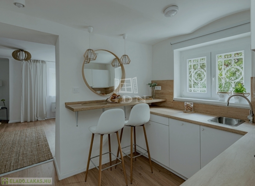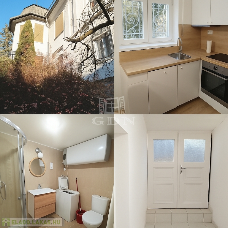 Csendes, zöldövezeti, parkos kertben lévő, teljesen felújított félszuterén lakás eladó
