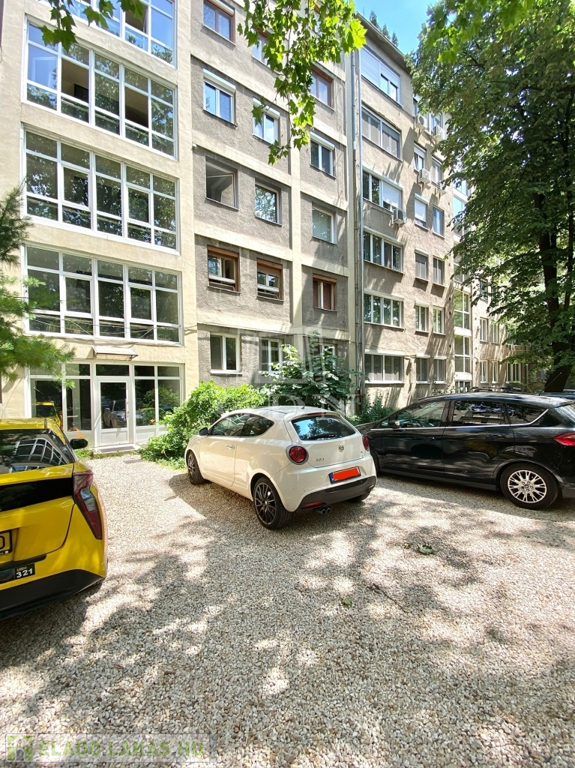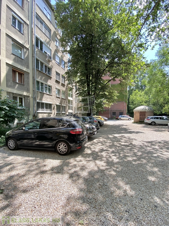 A parkolás a társasház hátsó elkerített részében megoldható.
