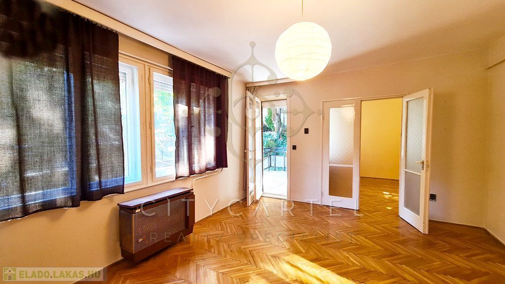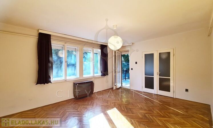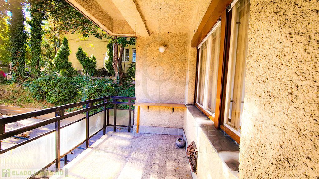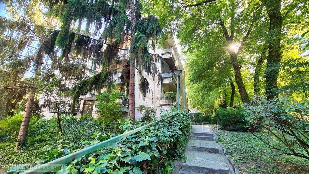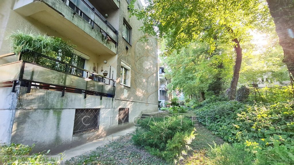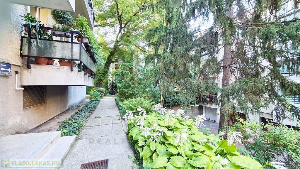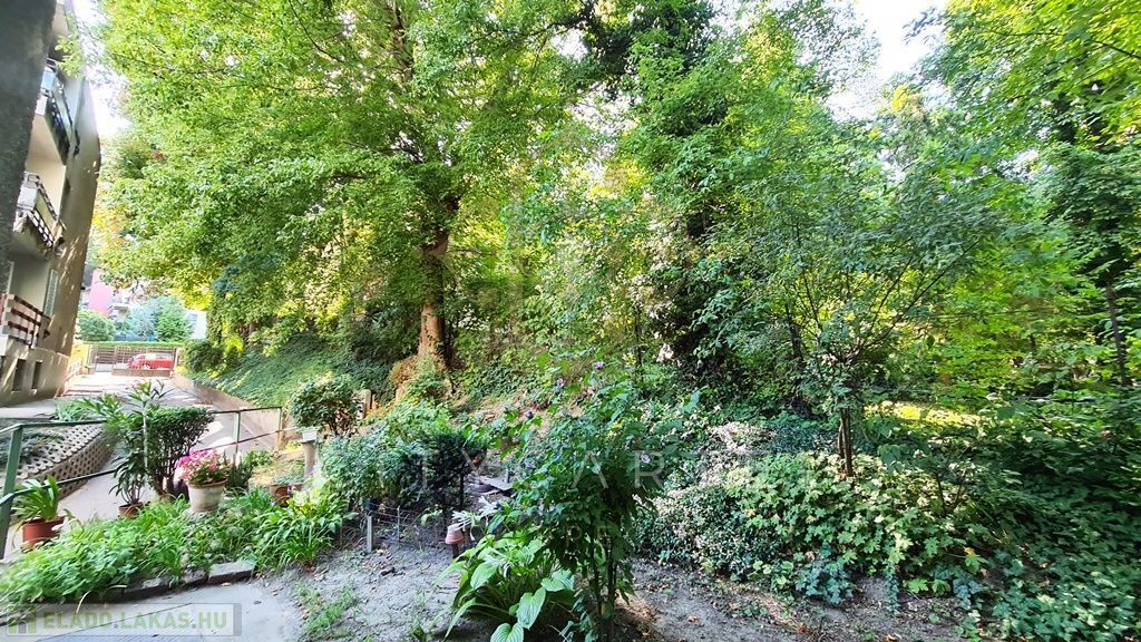 A Budagyöngye bevásárló központtól 10 percre a Tárogató úton, ősfás, parkosított és körbekerített telken, tégla építésű, 56 nm-es két erkélyes, körbejárható kettő szobás, gázkonvektoros földszinti lakás tárolóval eladó.