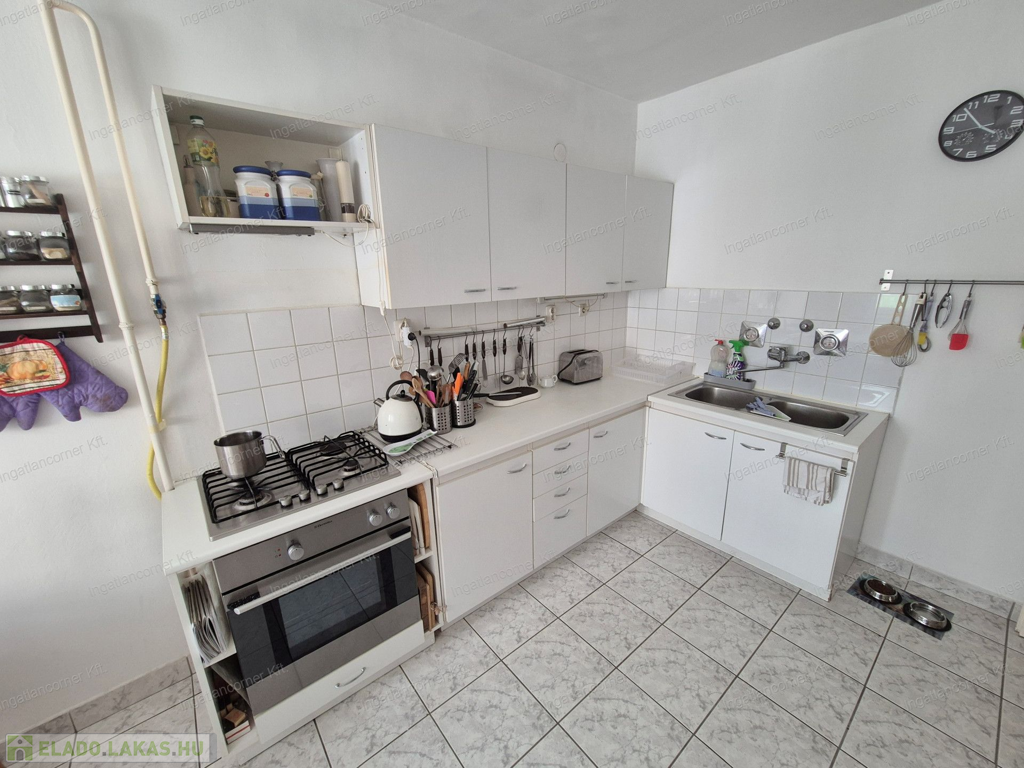 -a beépített konyhabútor a hozzá tartozó Electrolux légkeveréses sütőt, a hozzá tartozó gáztűzhellyel, továbbá az előszobában lévő faltól falig és mennyezetig beépített előszoba bútor.