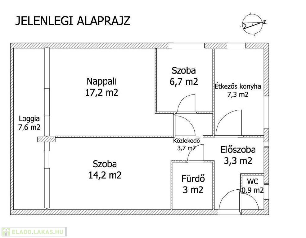 Az 57 nm-es lakás jelenleg is JÓ beosztású.