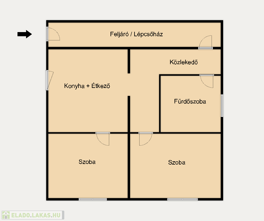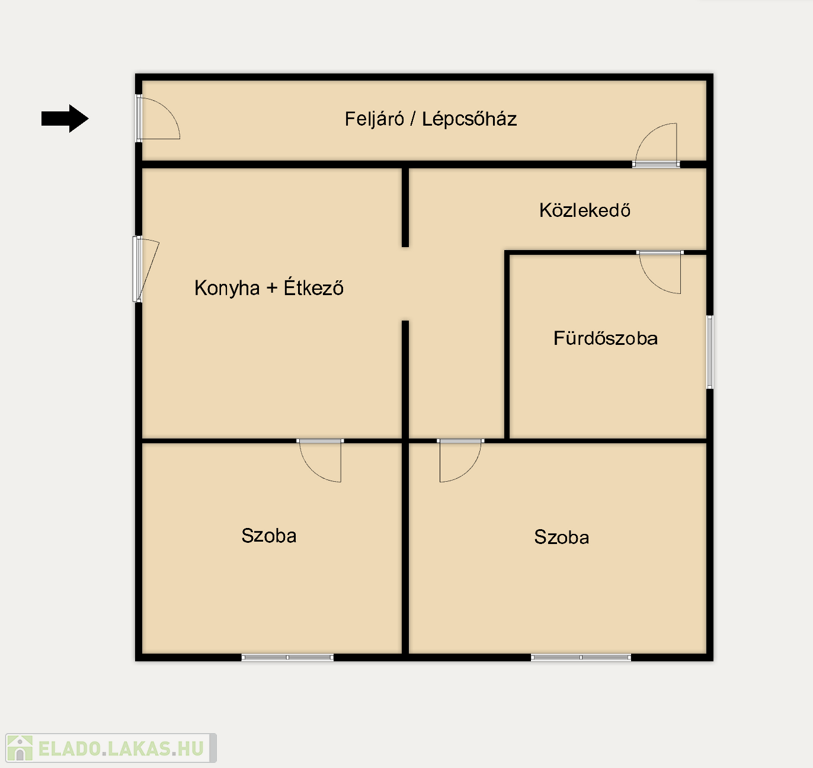 Alapterület: 69 m² + 5 m² lépcsőházi terület