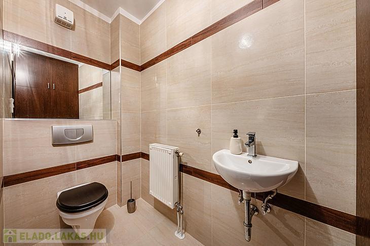 Az alsó szinten található egy különálló mosdó, még a felső emeleten egy beépített zuhanyzós ideális méretű fürdőszoba.