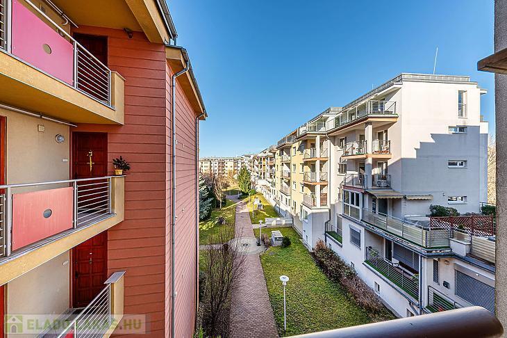 Modern lakópark része a társasház, aminek van egy közös használatú parkja.