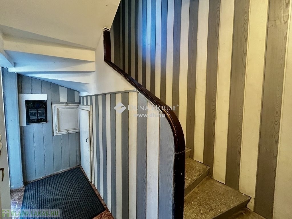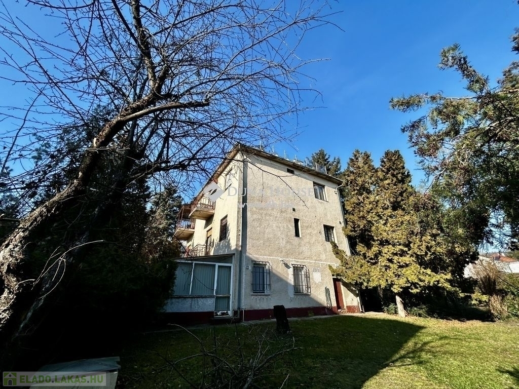 A ház 1939-ben épült téglából, közös használatú kert veszi körbe, amelyben egy kis medence is helyet kapott. A háznak közös kazán helyisége van, amely a kertből nyílik, itt található a három lakás külön gázcirkója. A tulajdonosok néhány éve cserélték a kazánt. A zárt lépcsőházban egy tároló is tartozik a lakáshoz.