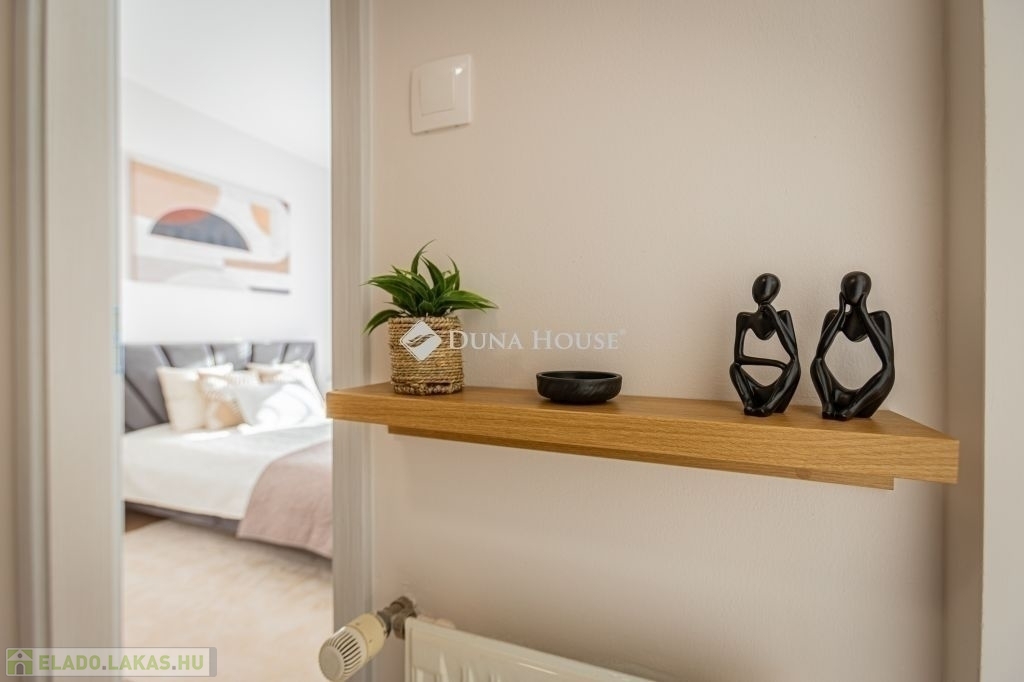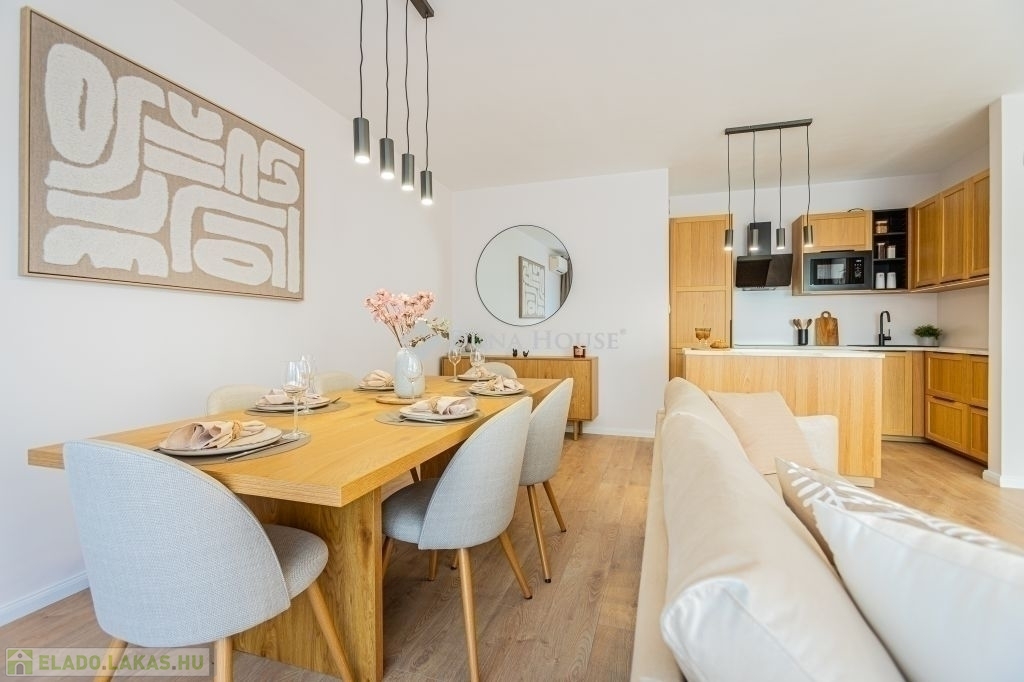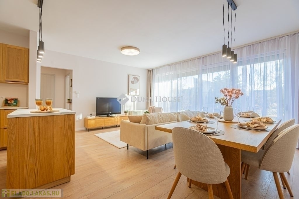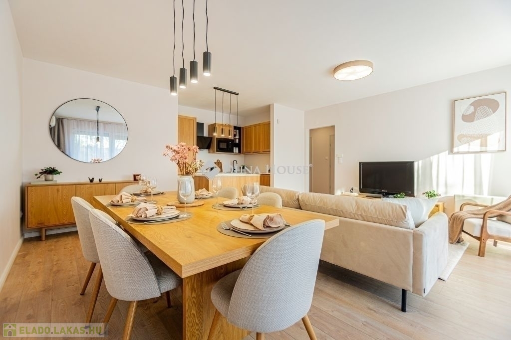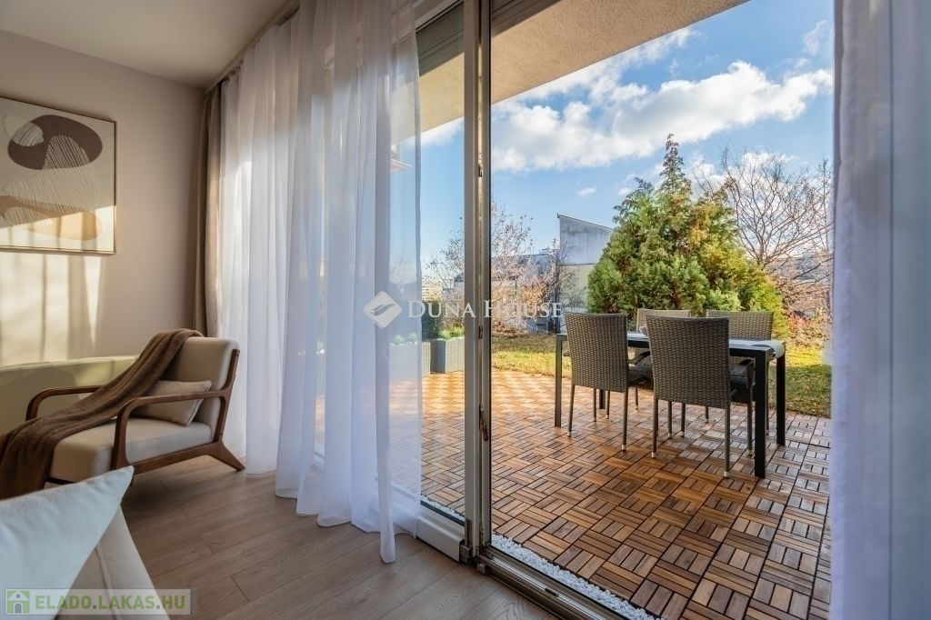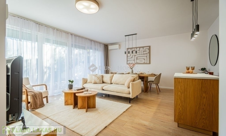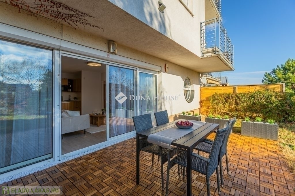 Ez az 57 m²-es lakás tökéletes elosztással vár: a tágas, több mint 27 m²-es nappali és a külön nyíló hálószoba kényelmes életteret biztosít. Az ingatlan igazi különlegessége azonban a hatalmas, 20 m²-es privát terasz és a hozzá tartozó kert, amely tavasztól őszig egy plusz „szobaként” funkcionál.