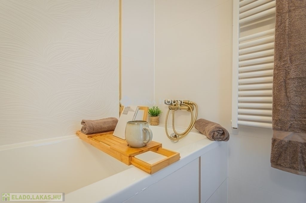 Az állapot makulátlan: a 2025-ben történt teljes körű felújítás során mindent kicseréltek. A modern, gépesített konyha és az igényes burkolatok azonnal érezhető minőséget sugároznak – ide tényleg csak költöznöd kell.