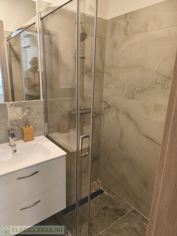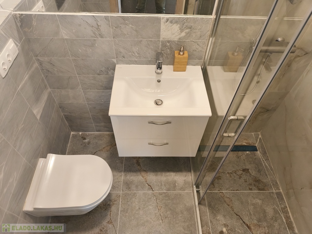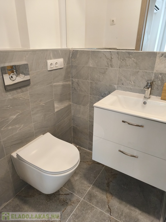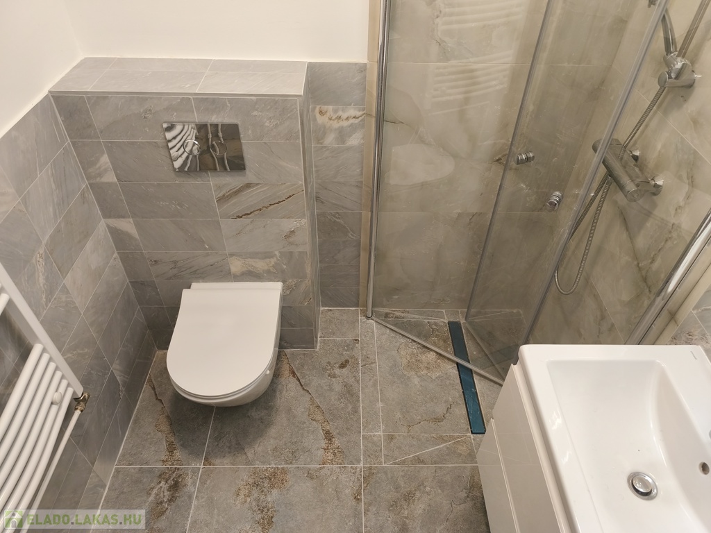 A felújítás még magában foglalja a teljes burkolat és fürdőszoba cserét, a termosztátos csaptelepeket, az időzítős fürdőszobai ventilátorokat.