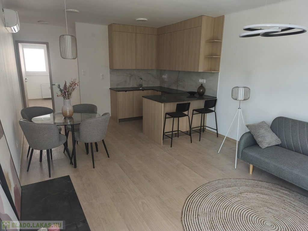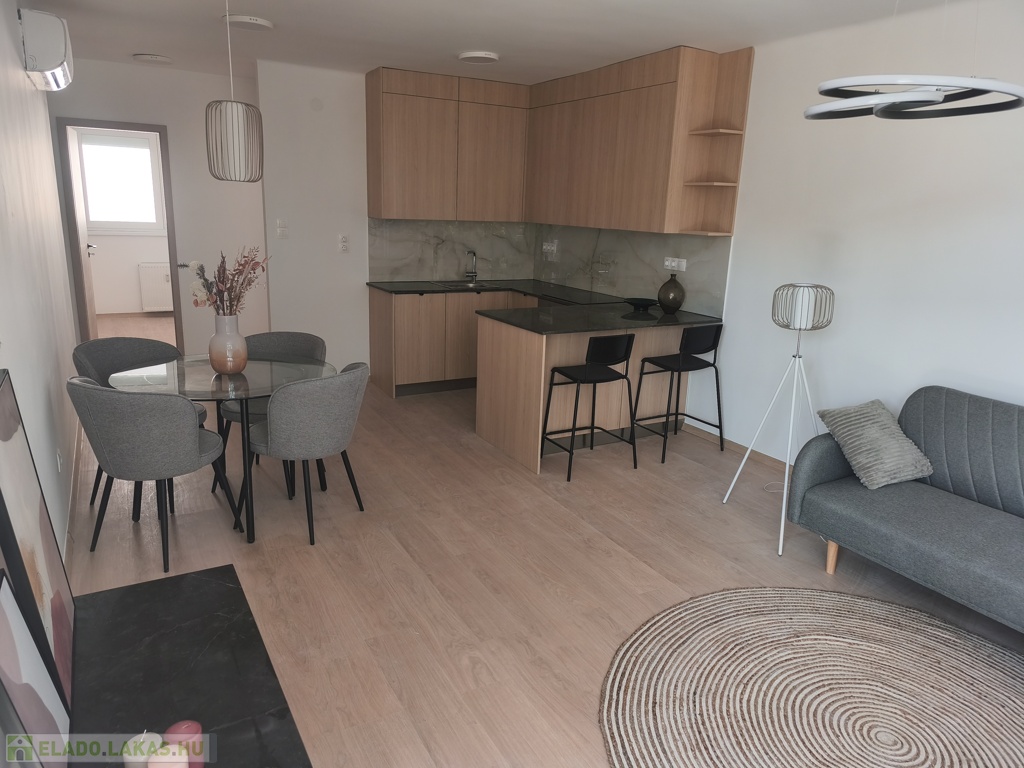 Az ingatlan K-Ny tájolású. Az előszoba és a két szoba a nyugati oldalon, az amerikai konyhás nappali és a hálószoba a keleti oldalon található.
