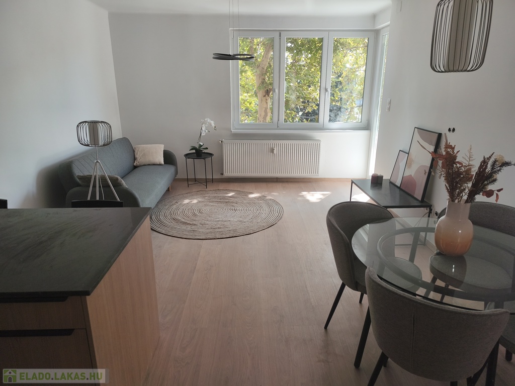A felújítás során kialakításra került helyiségek: amerikai konyhás nappali, két darab hálószoba, két darab zuhanyzós fürdőszoba, egy félszoba hálónak, vendégszobának vagy dolgozó szobának, egy mosókonyha és egy tárolóhelyiség.