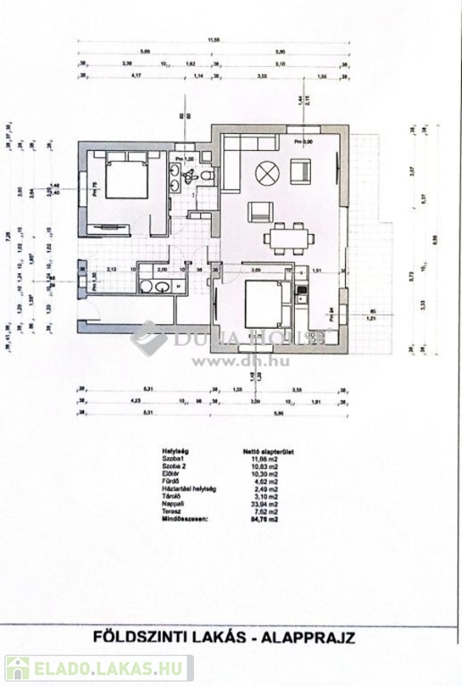 Az ingatlan az alábbi helyiségekből áll: panorámás nappali + konyha, 2 szoba, előszoba, fürdő+wc, lépcsőtér, erkély, háztartási helyiség, tároló.