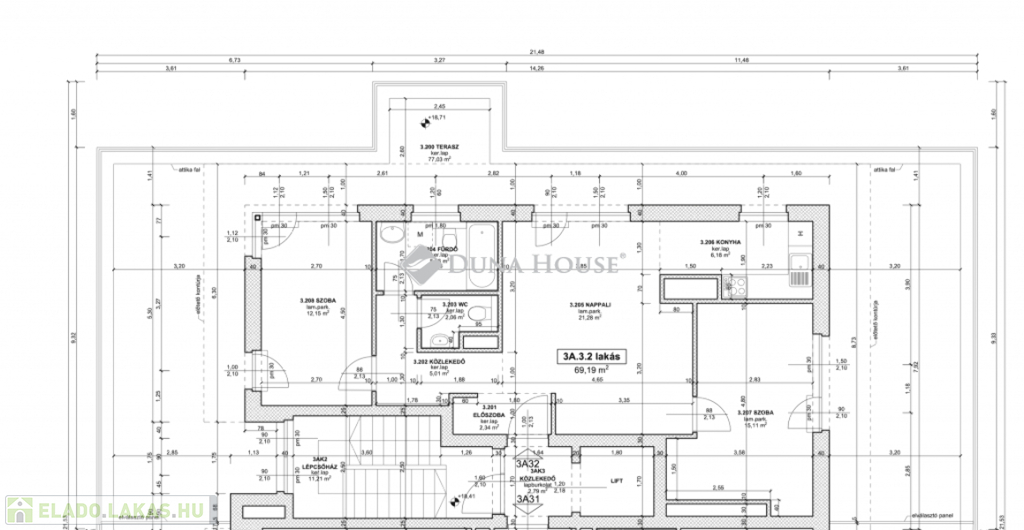 A lakás 3. emeleten helyezkedik el, 72nm-en, nappali + 2 hálóval, valamint további 77 négyzetméteres tetőterasszal, amelyről páratlan panorámában gyönyörködhetünk, bármely napszakban és ami az egész lakást körülöleli.