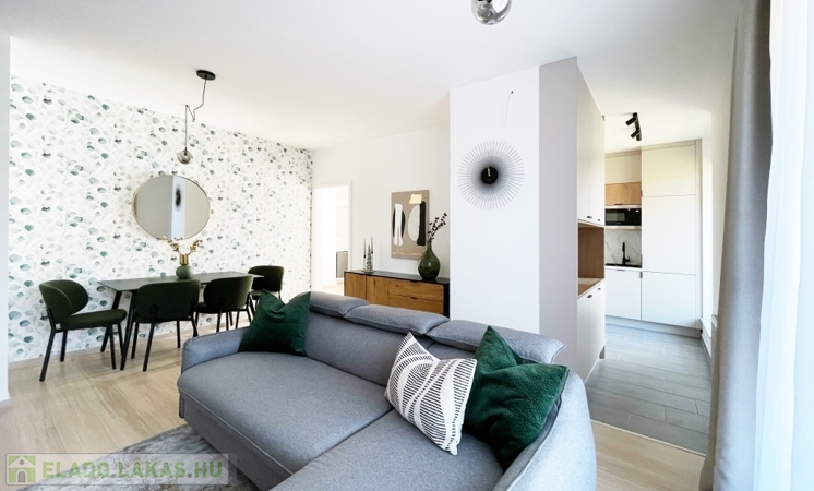 A modern megjelenés és a kiváló minőségű anyagok összhangja teszi ezt a lakást különösen vonzóvá.