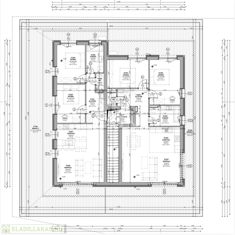 A br. 110 m²-es, 2. emeleti ingatlanban 63,86 m2-en előszoba, 2 hálószoba, amerikai konyhás nappali, külön fürdő és wc került kialakításra, a lakás éke pedig a 92,61m2-es erkély ami körbeöleli a lakást, így a helyiségek bármelyikéből ki tudunk rá menni.