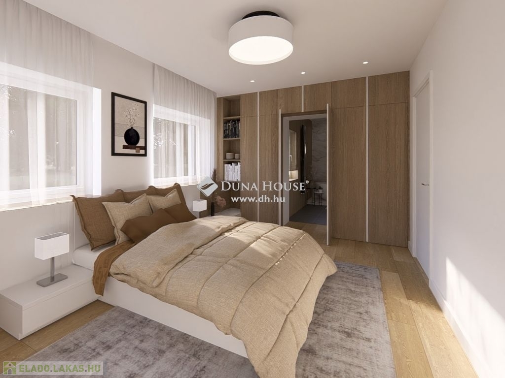 Az ingatlan az alábbi helyiségekből áll: panorámás nappali + konyha, 3 szoba, előszoba, 2 db fürdő +wc, lépcsőtér, erkély, háztartási helyiség.