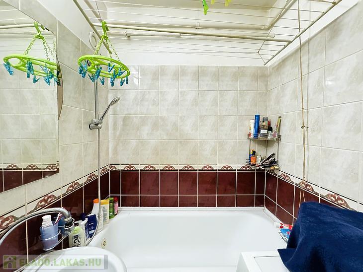 A fürdőszobában a burkolat cserélve lett és káddal rendelkezik, a WC egy külön helyiségben található.
