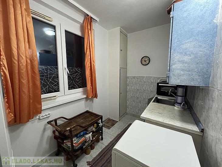 A konyha jól alakítható, praktikus méretű, nagy ablakának köszönhetően jól szellőztethető és világos. A fürdőszoba és a Wc külön helyiségben kapott helyet, a fürdőben öntöttvas kád található. A mosógép kiállása jelenleg nincsen kialakítva.