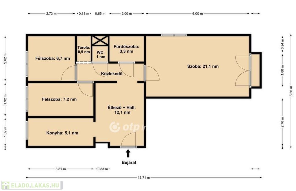 Méret: 57 négyzetméter
