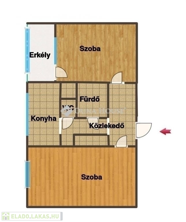 Az ingatlan tulajdoni lap szerint 48 m²-es, amihez egy jól kihasználható, 4 m²-es erkély is tartozik (így a valós használati terület 52 m²). A lakás elosztása praktikus: két külön nyíló szoba (17,5 és 12,5 m²), ablakos konyha, valamint külön fürdő és WC található benne.