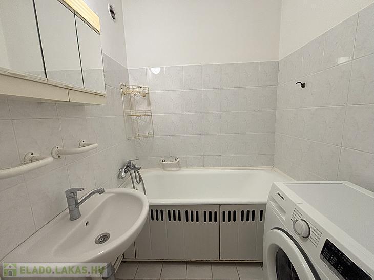 A fürdőszoba és a Wc kulturált, jó állapotú burkolatokkal rendelkezik, a fürdőben egy öntöttvaskád található.