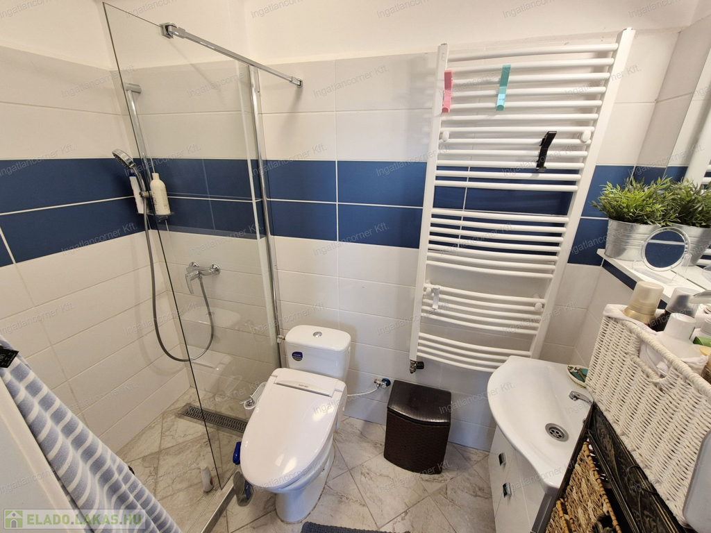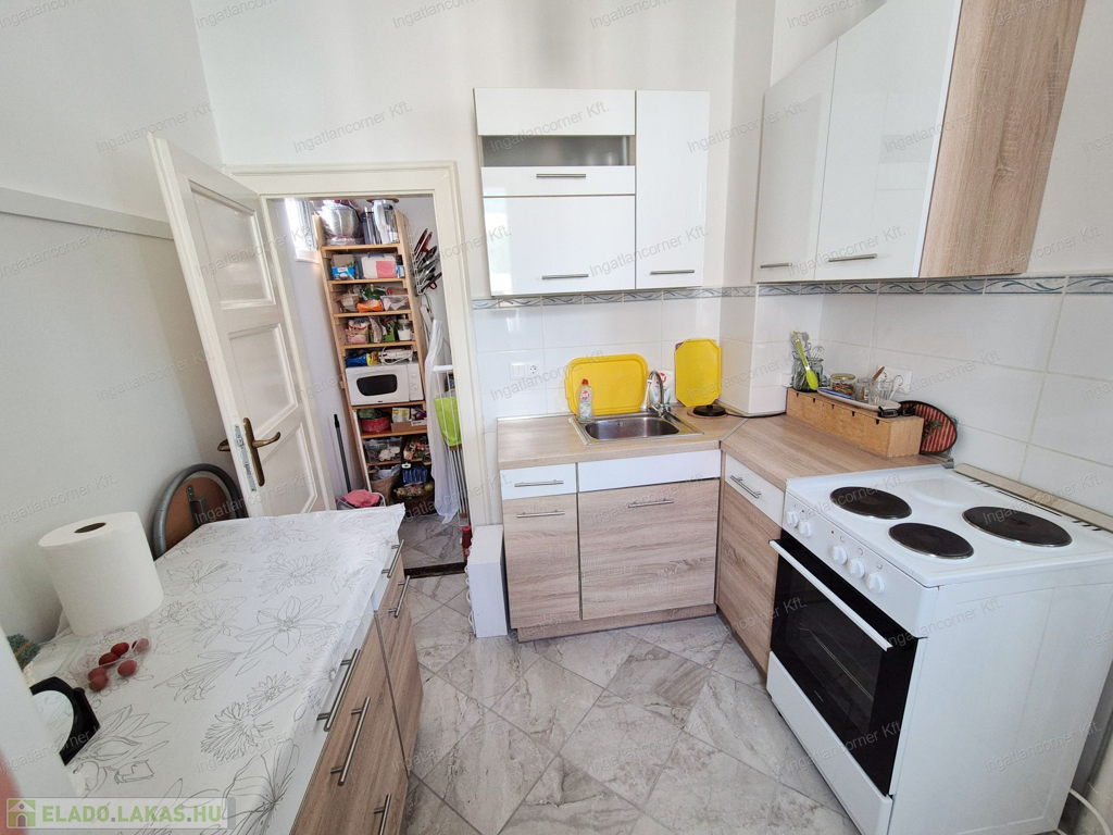 - ELOSZTÁS: A lakásba lépve kényelmes ELŐSZOBA fogadja az érkezőket, ahol a cipők, kabátok egyszerűen elhelyezhetőek, balra nyílik a nagyméretű ablakkal rendelkező külön KONYHA, melyből az úgyszintén ablakos KAMRA-MOSÓKONYHA (itt található a fűtési rendszer is) közelíthető meg. A lakás bejáratával szemben található az épített zuhanyzós elegáns FÜRDŐSZOBA, majd onnan jobbra nyílik az egymásból nyíló KÉT SZOBA.