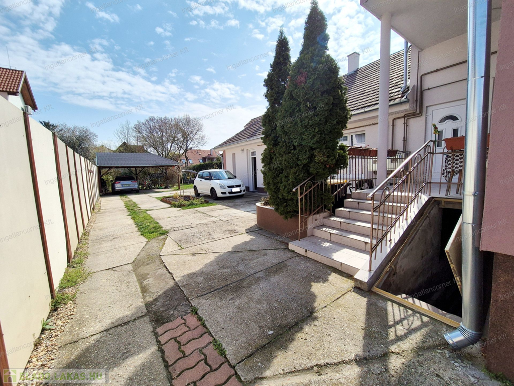 A lakótéren túl egy kb.30m2-es betonozott terület érhető el, ami a lakáshoz tartozó terület a ház oldalában, ami TERASZNAK vagy akár 2 autó számára, FEDETT GÉKOCSIBEÁLLÓKÉNT is használható, továbbá kb.20m2-es SAJÁT FÜVESÍTETT KERT tartozik a lakáshoz!