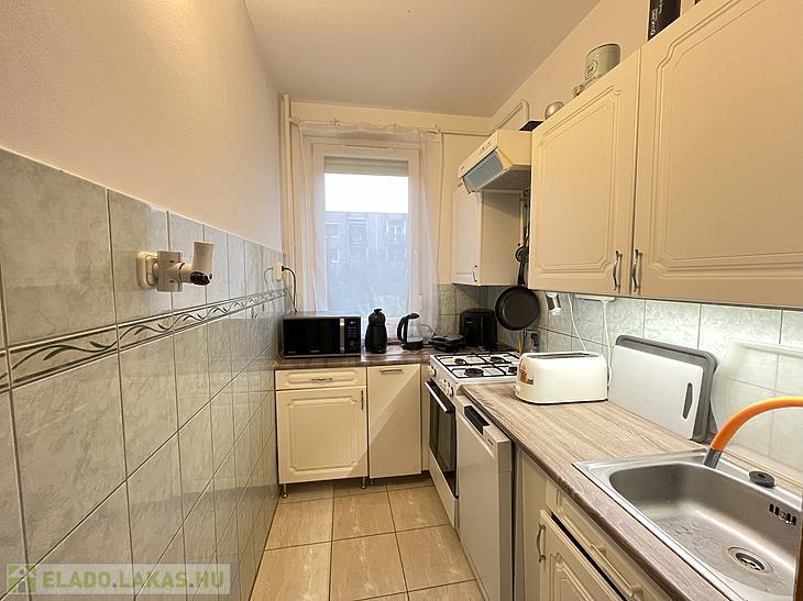 A konyhában újabb konyhabútor található, ami a mindennapi használatot kényelmessé teszi, a fürdőszoba pedig akrilkáddal és újabb burkolattal készült, modern és praktikus megoldást nyújt.
