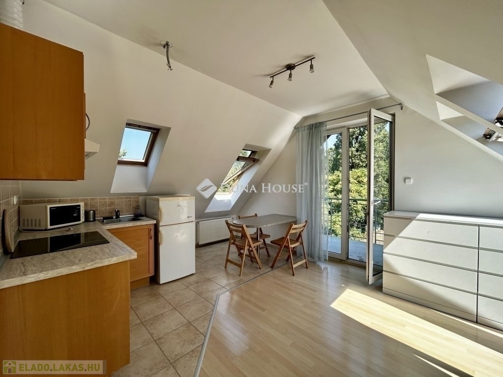 Római-parti hangulatSzeretne egy helyet, ahol reggel a kávéját csendben, zöldre néző erkélyen fogyaszthatja el, este pedig csak pár perc séta a Duna-parti sétány?Ez a Nánási úton, 2005-ben épült társasházban található, 2. emeleti, tetőtéri lakás pontosan ezt kínálja.A 44 m²-es otthon barátságos elrendezésű: amerikai konyhás nappali, hálószoba, kádas fürdőszoba, külön WC, kis gardrób helyiség, két erkély, ahonnan a belső kertre nyílik kilátás.A ház alatt található teremgarázsban saját parkolóhely és tároló is tartozik a lakáshoz, amelyek kötelezően megvásárlandók: a garázs ára 9 millió Ft, a tároló ára 1 millió Ft.Az épület nyugodt, rendezett környezetben áll, mégis minden közel van séta a Dunához, sportolási lehetőségek, éttermek, kávézók.Ha szeretne egy valódi Római-parti otthont, várom hívását!