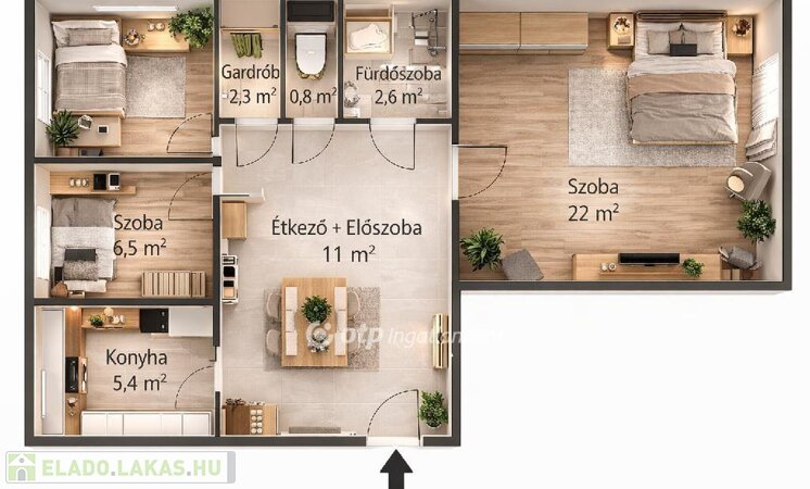 Kiváló elosztású egy plusz két félszobás nagyon praktikus gardróbbal!