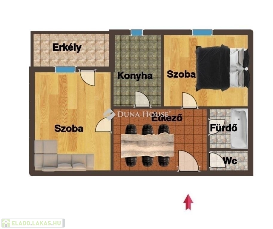 Kialakítása: 2 szoba, fürdő, külön wc, étkező, 4.85 m2 erkély