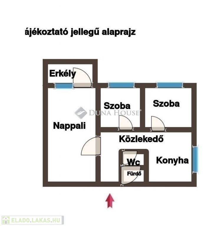 A lakás praktikus elrendezésű, ablakos konyhával rendelkezik, a szobák világosak, jól bútorozhatók.