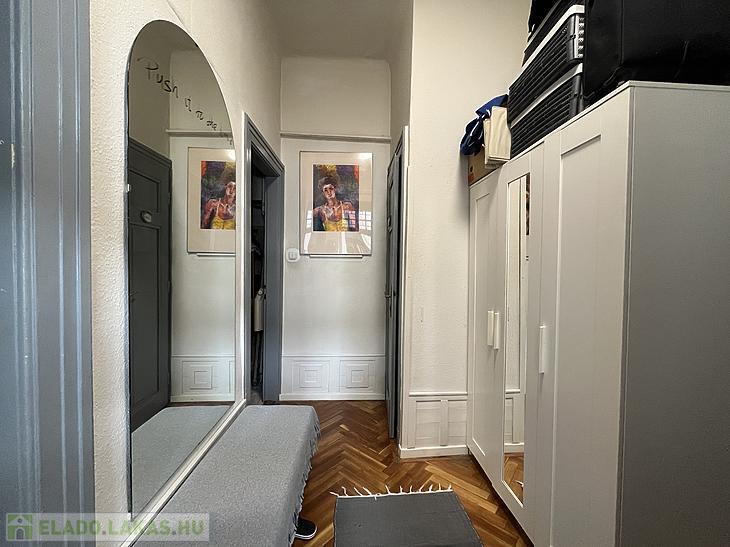 A szoba faparkettás, a vizeshelyiségek pedig járólaposak.