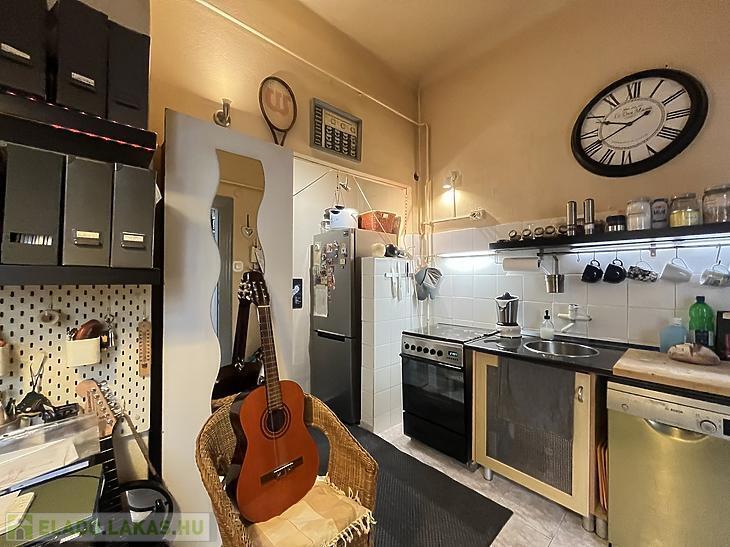 A konyha mosogatógéppel felszerelt, illetve a mosógép ki-és beállása is ebben a helyiségben lett kialakítva.