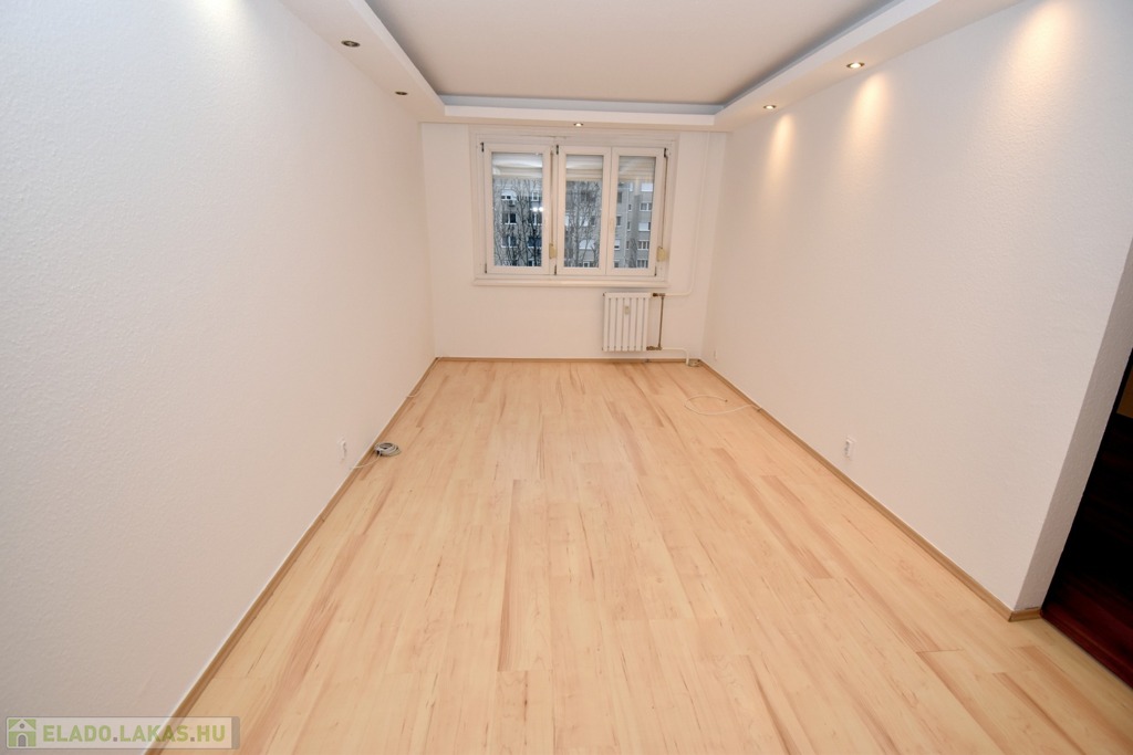 A lakás parkra néző, amely nyugodt, zöld környezetet biztosít, miközben a városi infrastruktúra előnyei is maradéktalanul elérhetők A szobák burkolata laminált parketta, míg a többi helyiség járólappal burkolt. Az ablakos konyha természetes fénnyel telített, praktikus kialakítású, ideális a mindennapi főzéshez. A fürdőszoba zuhanykabinnal felszerelt, a mellékhelyiség külön helyiségben található. A mosógép elhelyezésére a fürdőszoba melletti gardróbhelyiség ad kényelmes megoldást.