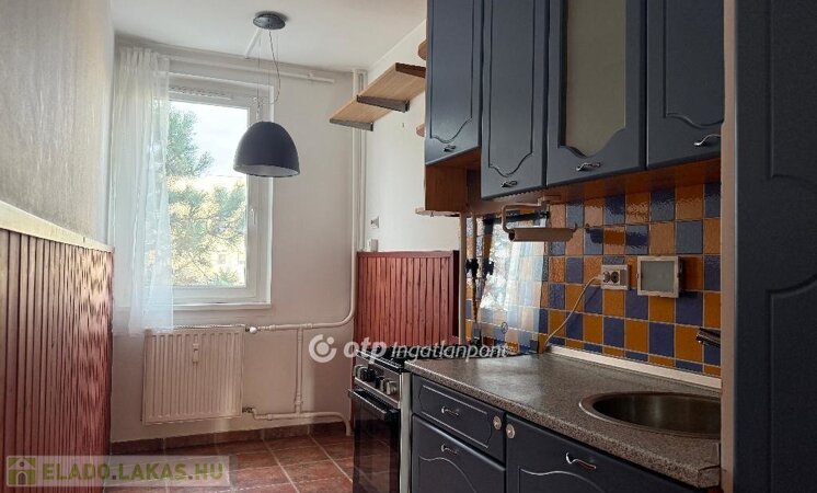 A lakás a második emeleten van. Praktikus elosztású. Külön van a WC a kádas fürdőszobától. A konyhában van hely egy kétszemélyes étkezőhöz. A belső burkolatok 10-12 éve voltak cserélve, ragyogó állapotban vannak. A lakás ára tartalmazza a tűzhelyen kívül a sütő, mosógép, hűtőszekrény árát is. A nappalihoz tartozik egy franciaerkély. A lakás világos, déli fekvésű. Minden ablakból csak a zöld növényzetet láthatjuk. A lakáshoz tartozik rendhagyó módon egy félemeleti tároló, ami a szomszédos két lakással közösen használható. Saját igényesen elkerített pincerekesz is része az ingatlannak.