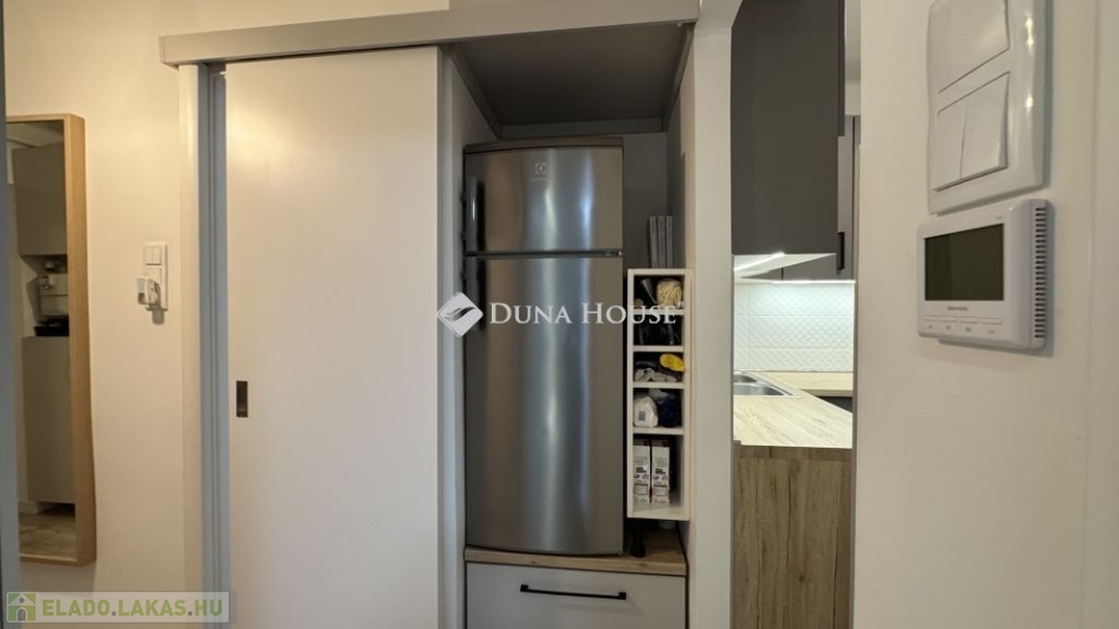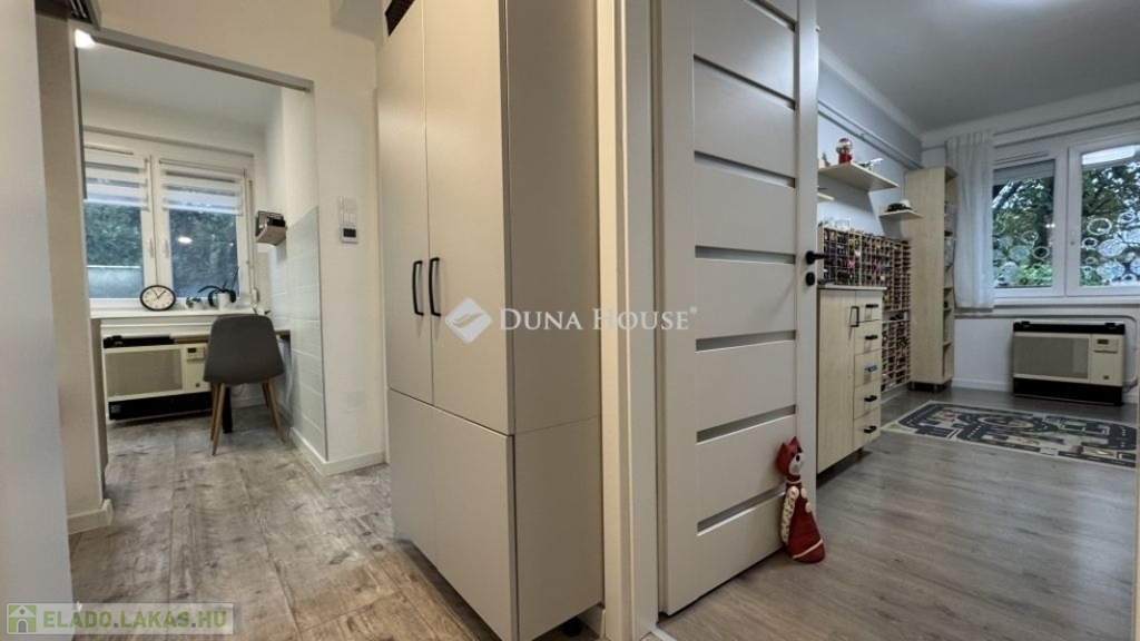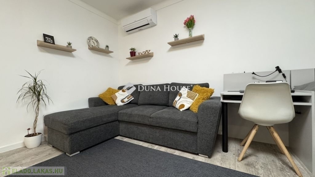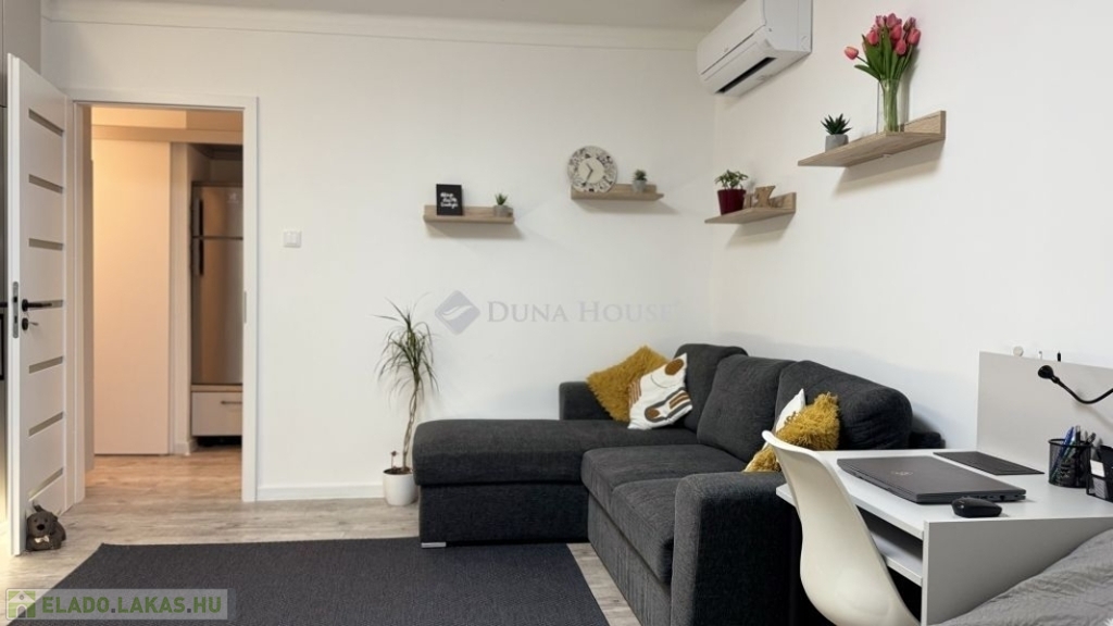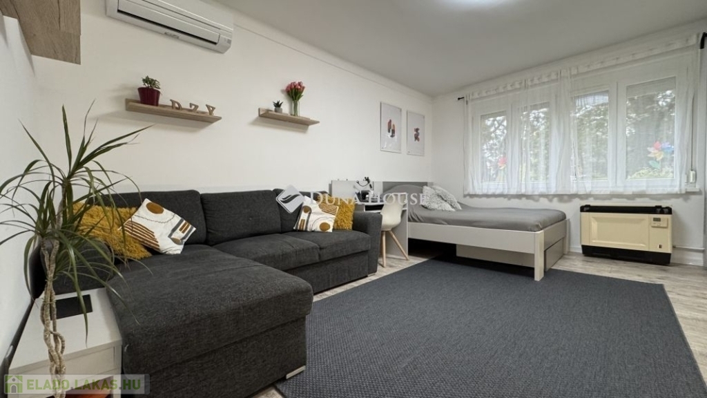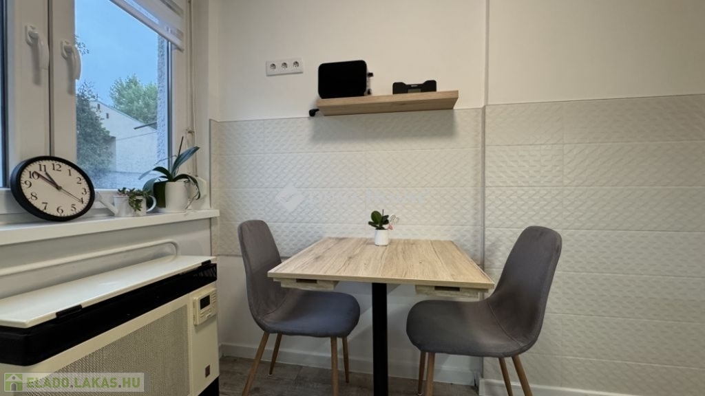 Eladó, 47m²-es 2 szobás, lakás a Folyondár utcában!Akár teljes bútorzattal is megvásárolható!!Az ingatlan 2021-ben teljes körű felújításon esett át, amelynek során minden nyílászáró, burkolat és gépészet megújult. A 47 m²-es, keleti tájolású lakás a földszinten helyezkedik el, és a lépcsőházból megközelíthető, osztatlan közös kertrésszel rendelkezik, melyet szokásjog alapján saját használatban van. az aktuális tulajdonos által.Főbb jellemzők:Alapterület: 47 m²Elrendezés: nappali, konyha, hálószobaFűtés: padlófűtés, konvektorKlíma: vanMinőségi beépített bútorok, új konyhabútorEgyedi, modern belső megoldásokPrivát felszíni parkoló!!Rezsi:Közös költség: 20 000 Ft/hó (kertész, felújítási alap, kerti víz)Gáz átalány: 6 800 Ft/hóVillany: 9 000 Ft/hóVíz: 6 000 Ft/2 hóKörnyék, közlekedés:A Folyondár utca egy csendes, zöldövezeti részen található, körbezárt lakóparkban, mégis kiváló közlekedési adottságokkal. A 65-ös és 165-ös buszmegálló néhány perc sétára elérhető, a közeli Kolosy tértől pedig villamosokkal gyorsan megközelíthető a belváros. A mindennapi kényelemről a közelben található Újlaki iskola, bolt, a híres Daubner cukrászda, az uszoda, valamint a GOBUDA bevásárlóközpont gondoskodnak.Az ingatlan ideális választás pároknak, fiataloknak vagy befektetőknek egyaránt, hiszen a környék keresett és kiadhatósága is kiváló.