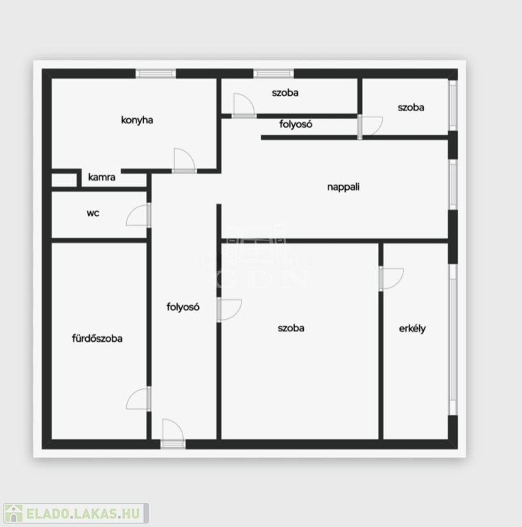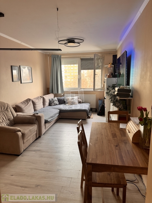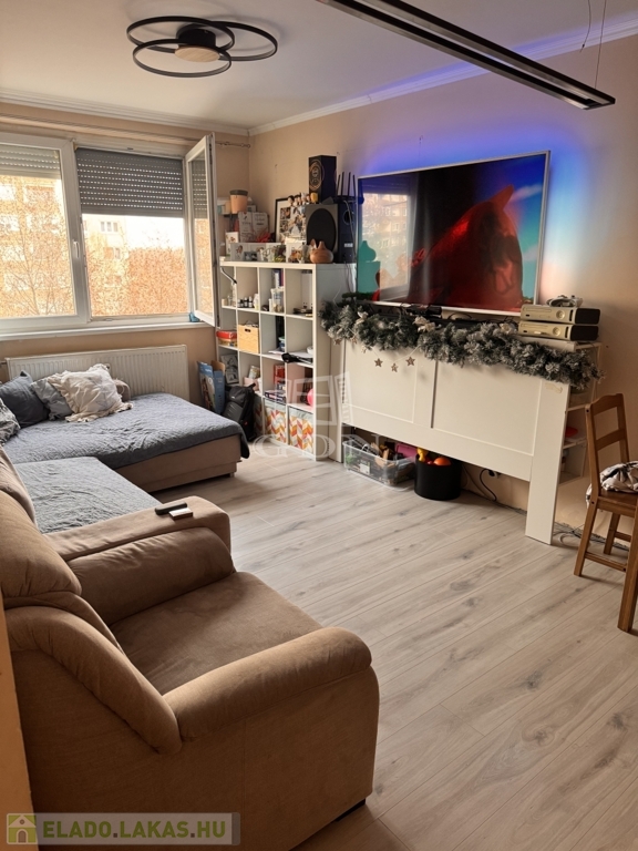 A lakás jó elosztású, két hálószoba és két félszoba biztosítja a kényelmes lakhatást.